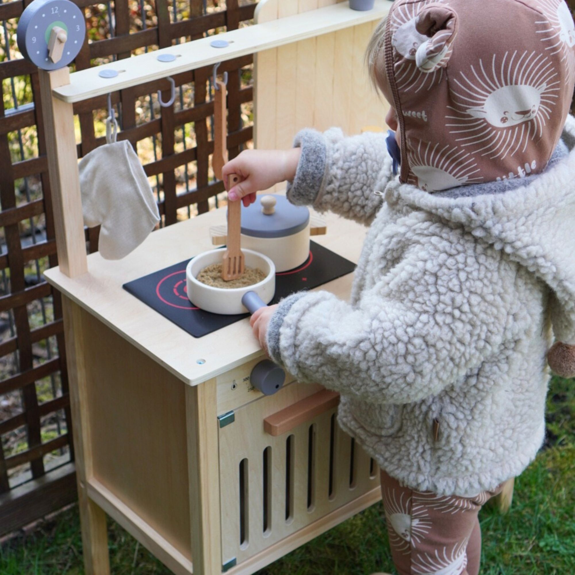 Medinė sodo virtuvė su priedais - natūralus boho