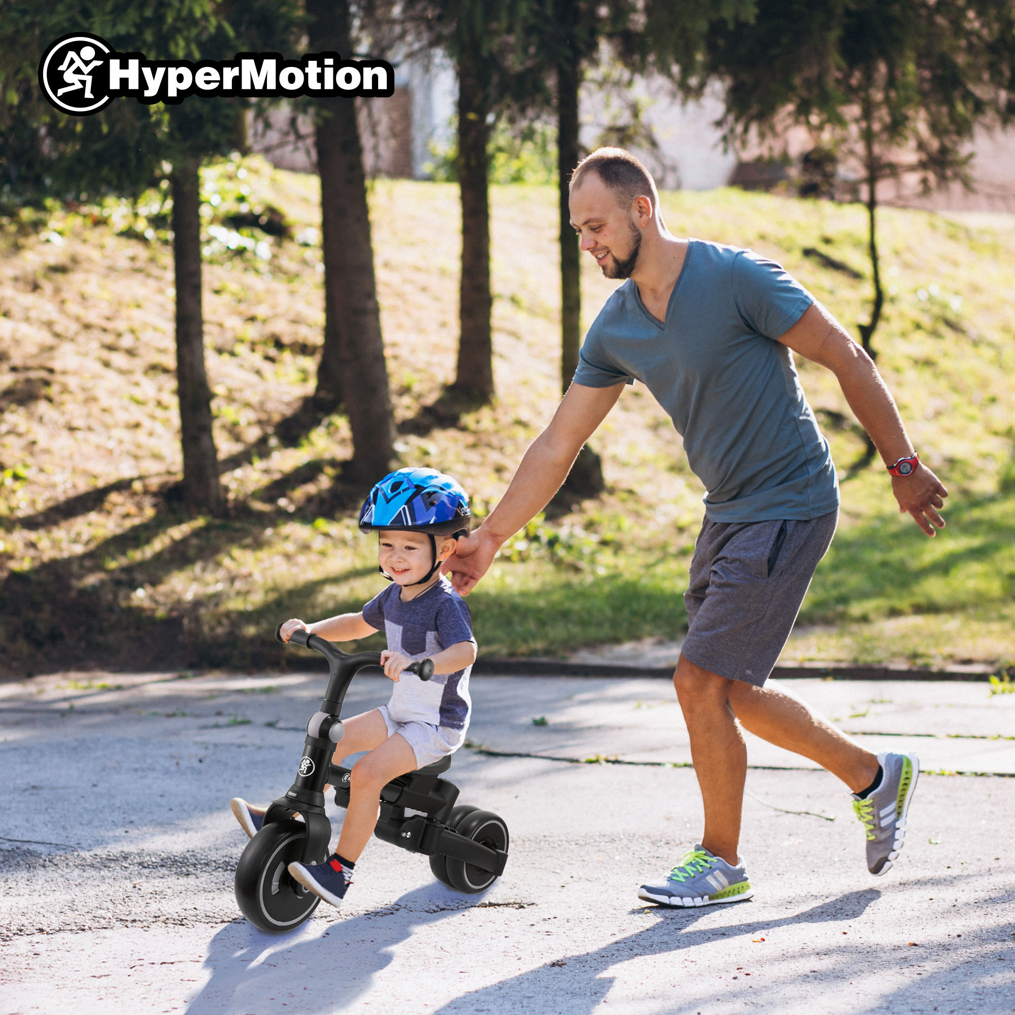 Trijų ratų daugiafunkcinis dviratukas su stūmimo strypu ir praktišku stogeliu yra sėkmingų ir smagių pasivaikščiojimų su vaiku receptas. Mažylis gali minti pedalus ir mėgautis judėjimu gryname ore arba atsipalaiduoti patogioje sėdynėje, o jo globėjai perima vairavimo funkciją.