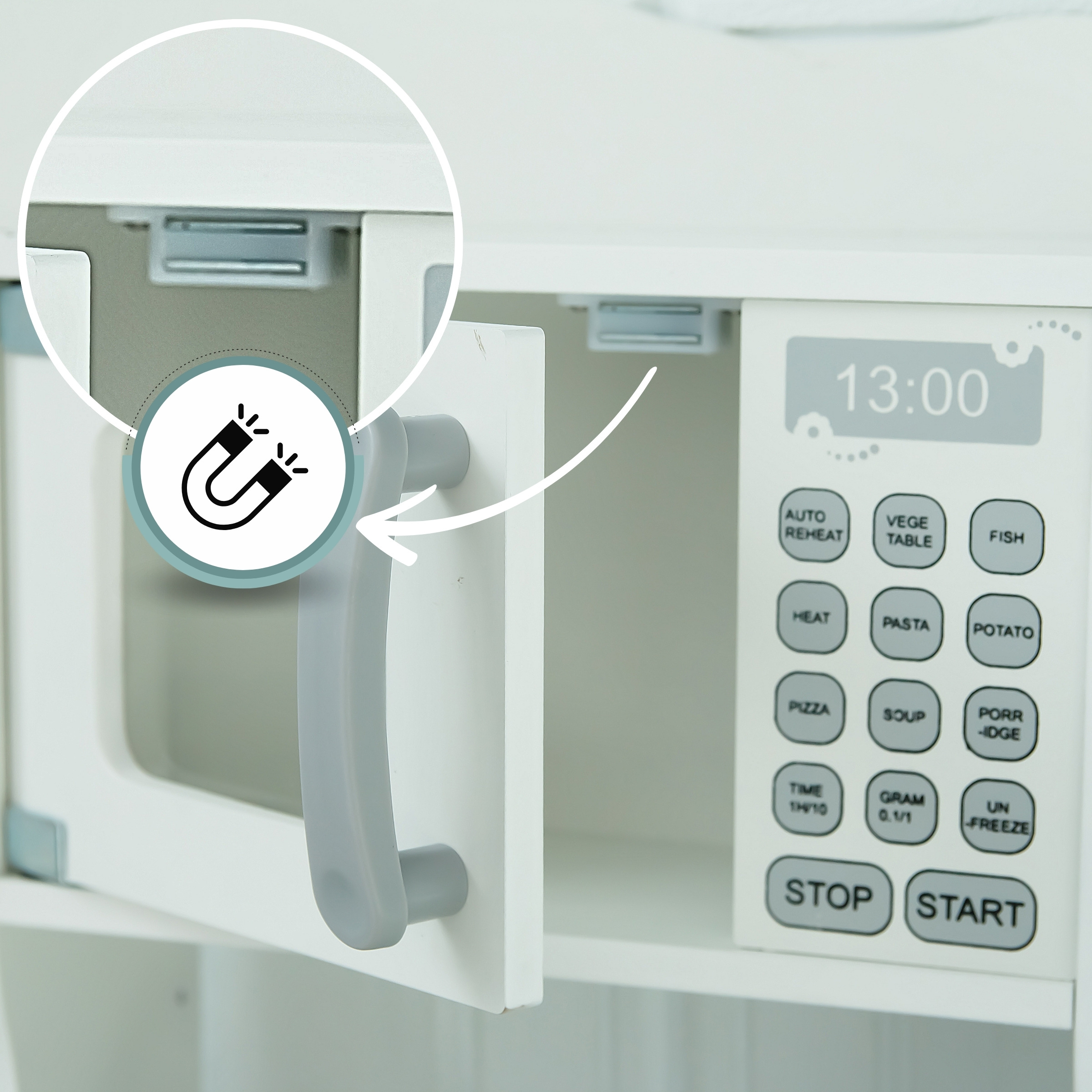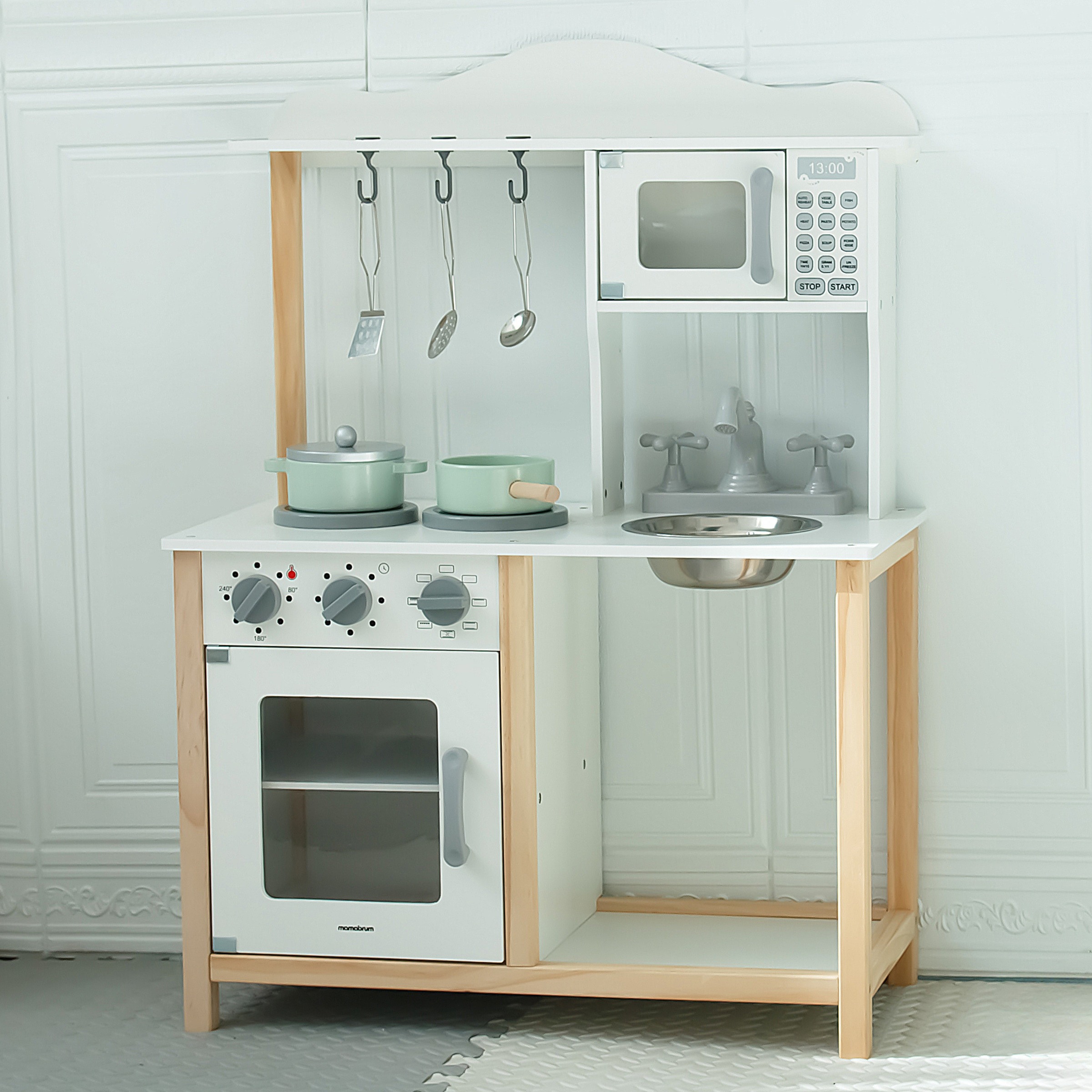 Medinė vaikų virtuvėlė su mikrobangų krosnele