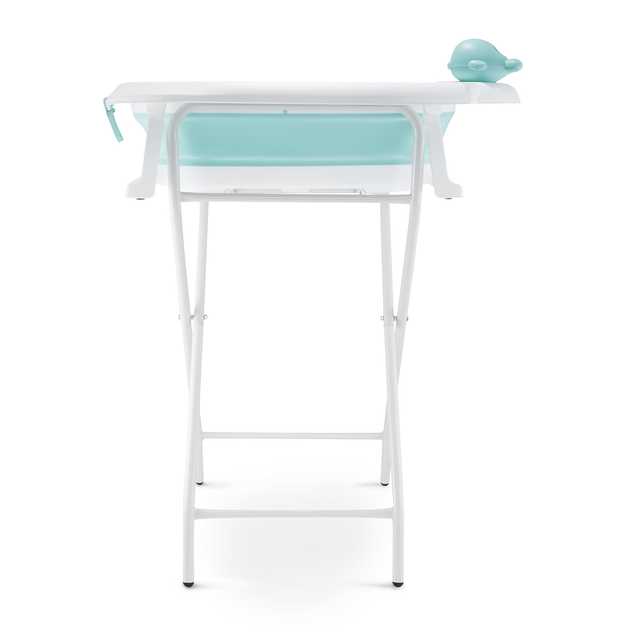 • Pridedamas itin aukštas stovas - atlenkiamas stovas leidžia patogiai maudyti kūdikį nesilenkiant.