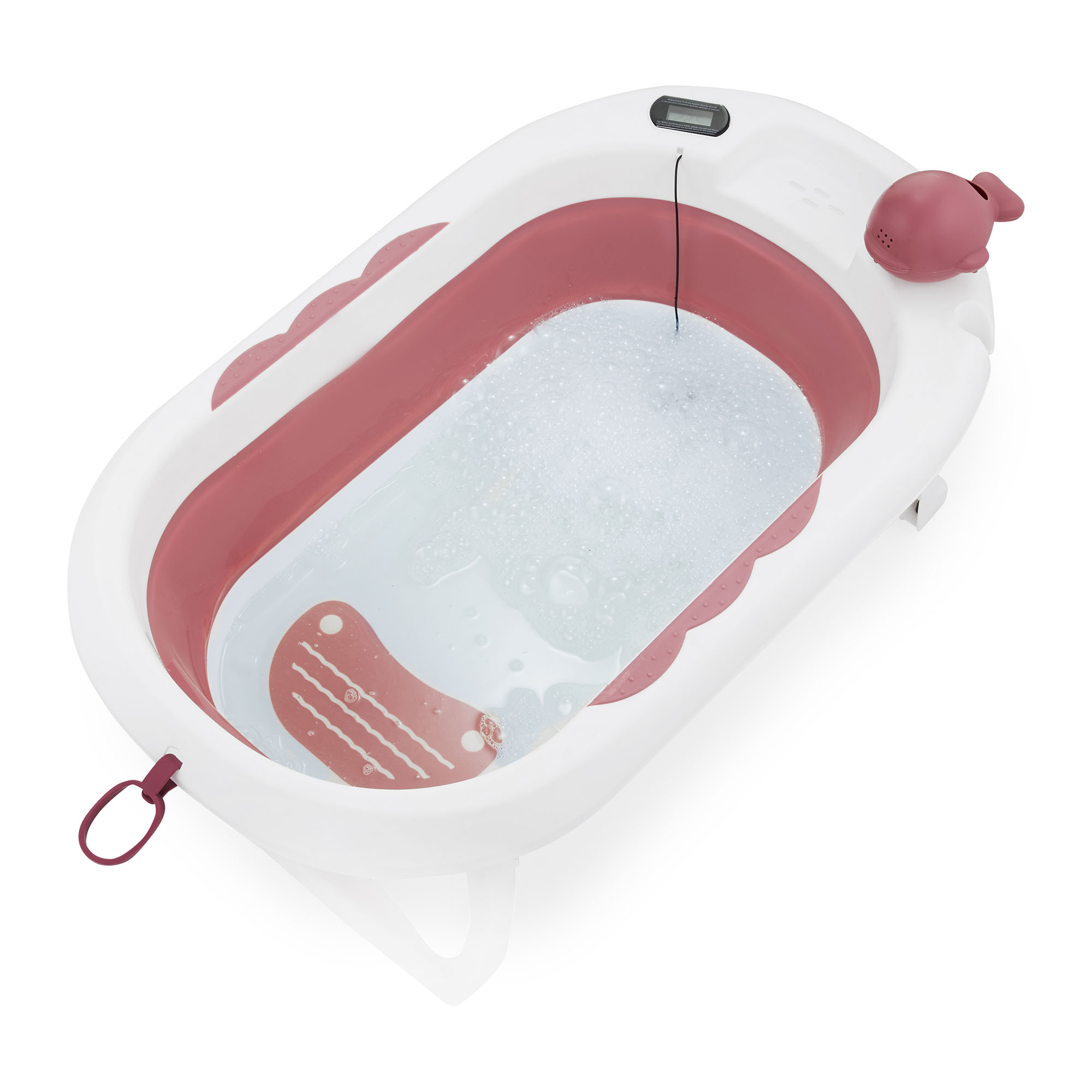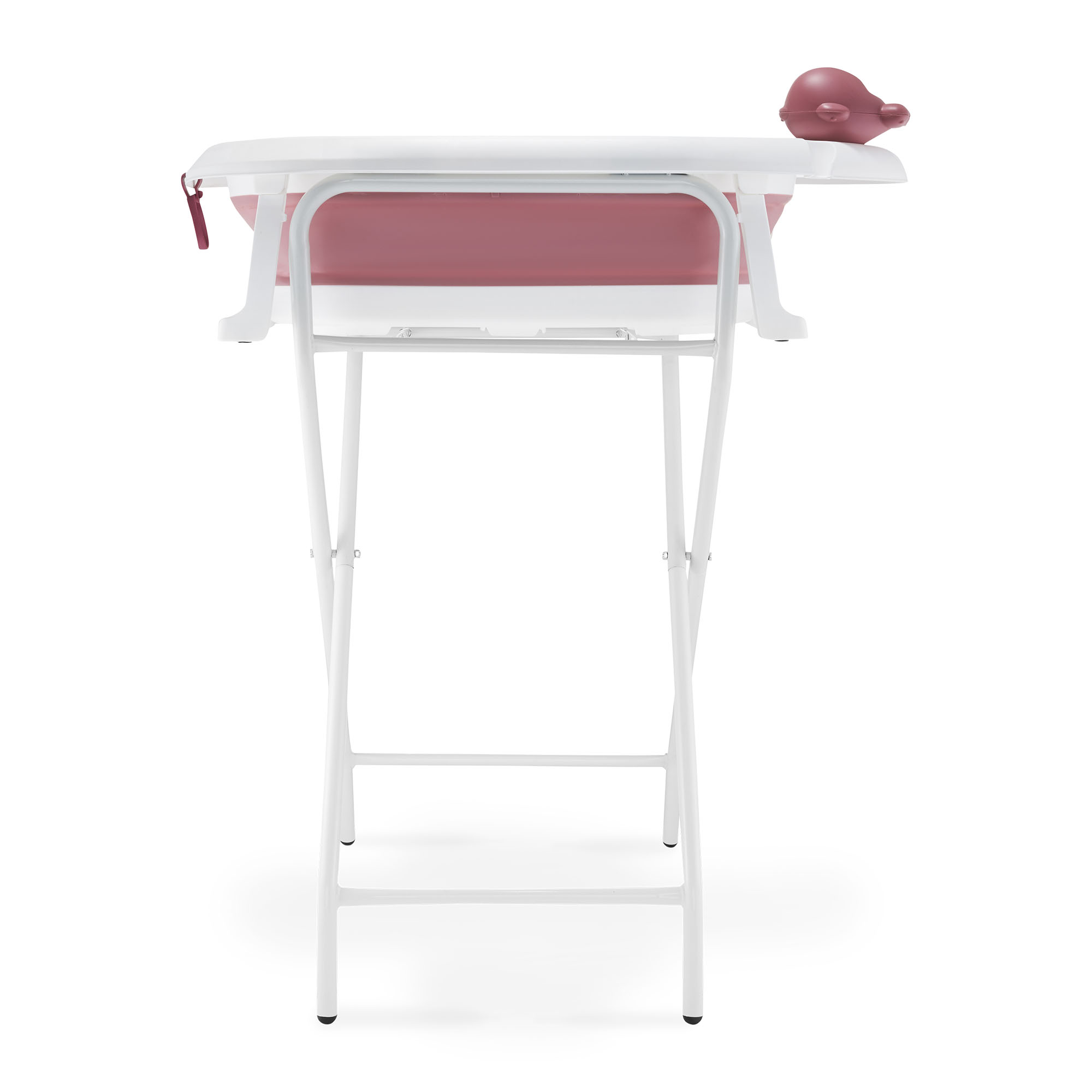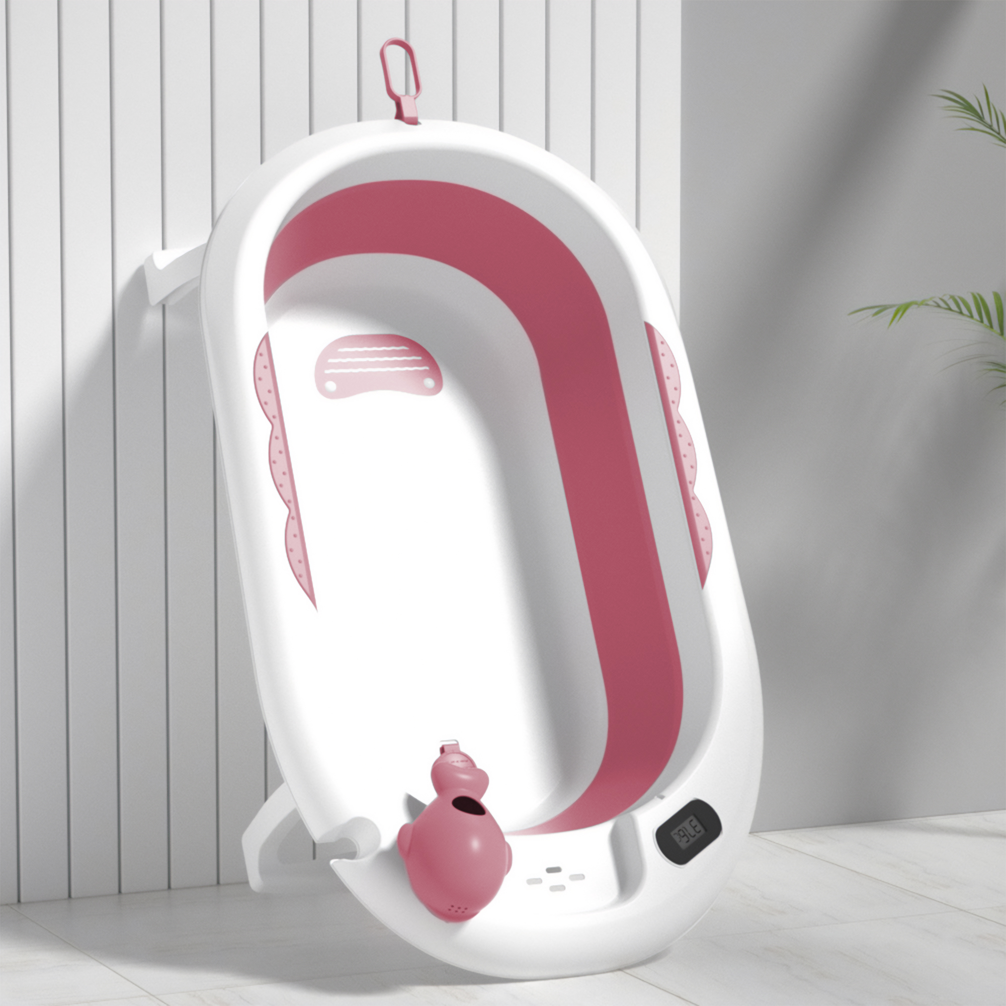 Sulankstoma kūdikių vonelė su termometru, įdėklu ir stovu - purvinai rožinė spalva