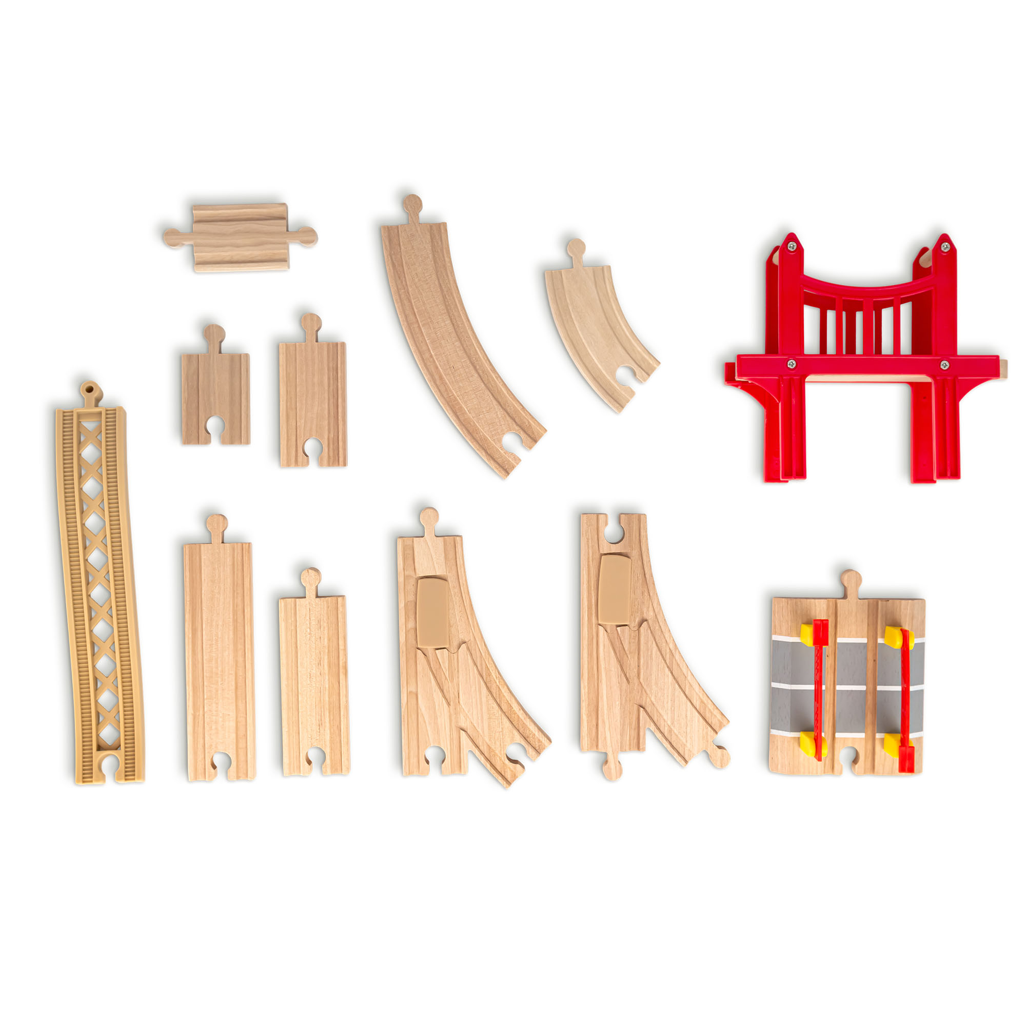 Tiltai su rampomis ir geležinkelio tuneliai suteikia visam rinkiniui dinamiškumo ir charakterio. Vaikai gali stebėti, kaip traukinys įvažiuoja į tiltą, kerta viaduką ir dingsta tunelyje. Šis įdomus žaidimo elementas kiekvieną kelionę paverčia skirtinga . Be to, tiltai ir tuneliai padeda lavinti erdvinę vaizduotę ir moko planuoti maršrutus.