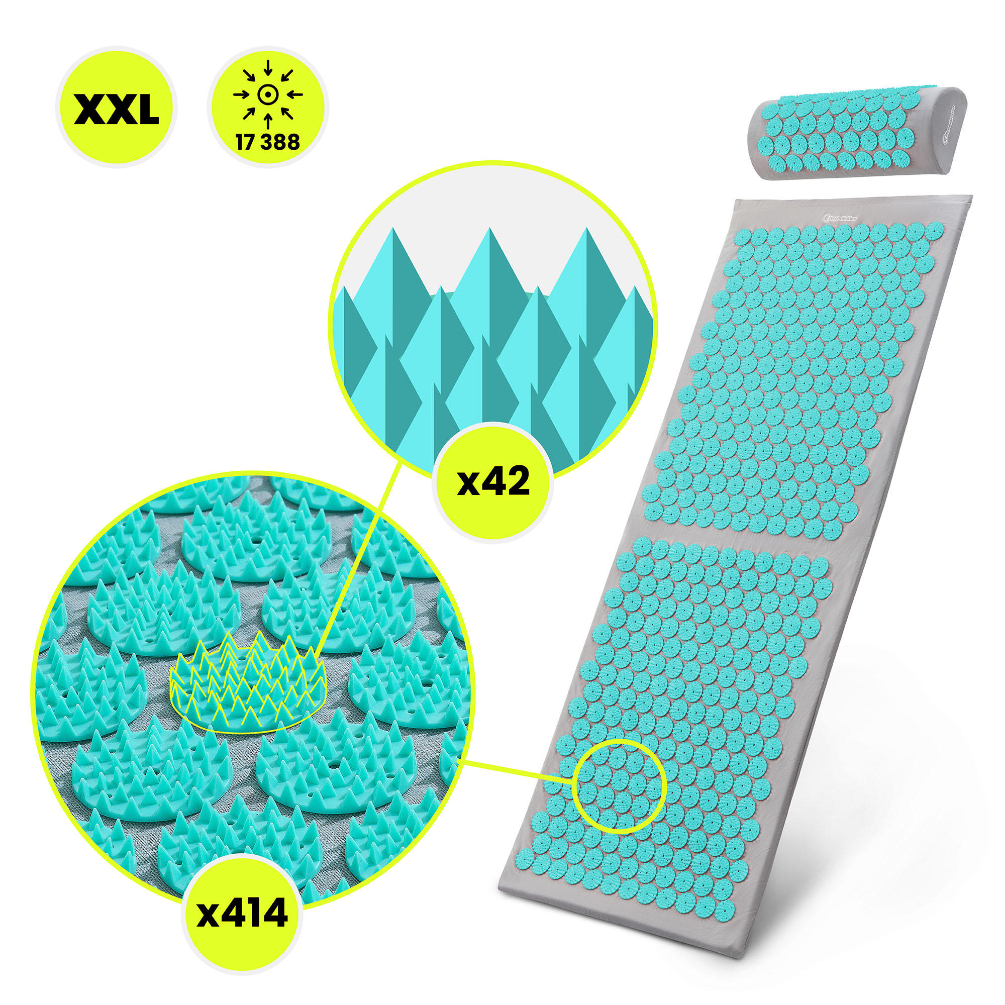 Didelis akupresūros kilimėlis su pagalvėle ir užvalkalu – 130 cm „HyperMotion“ pilkai mėtinis