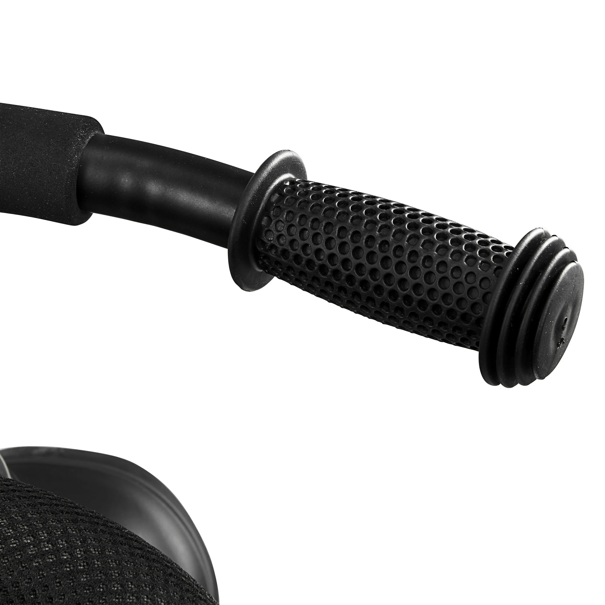 Daugybė iškyšų ant rankenų pagerina rankų sukibimą, o platūs akordeono formos rankenų galai dar labiau sušvelnina smūgį ir apsaugo mažylį nuo susižalojimo.