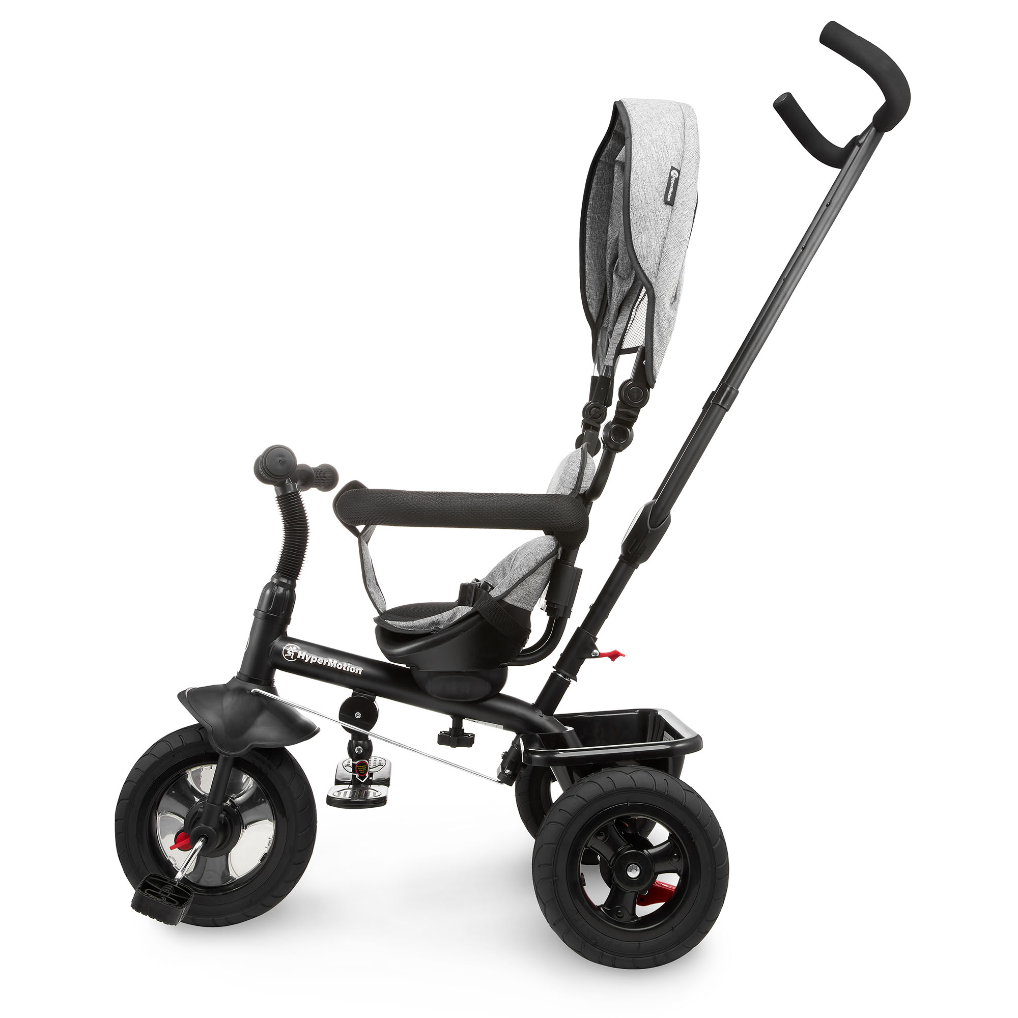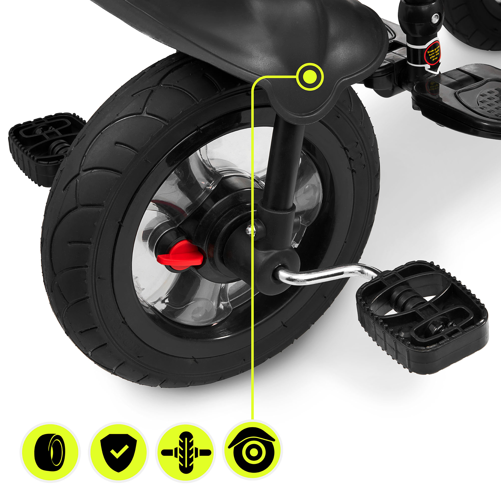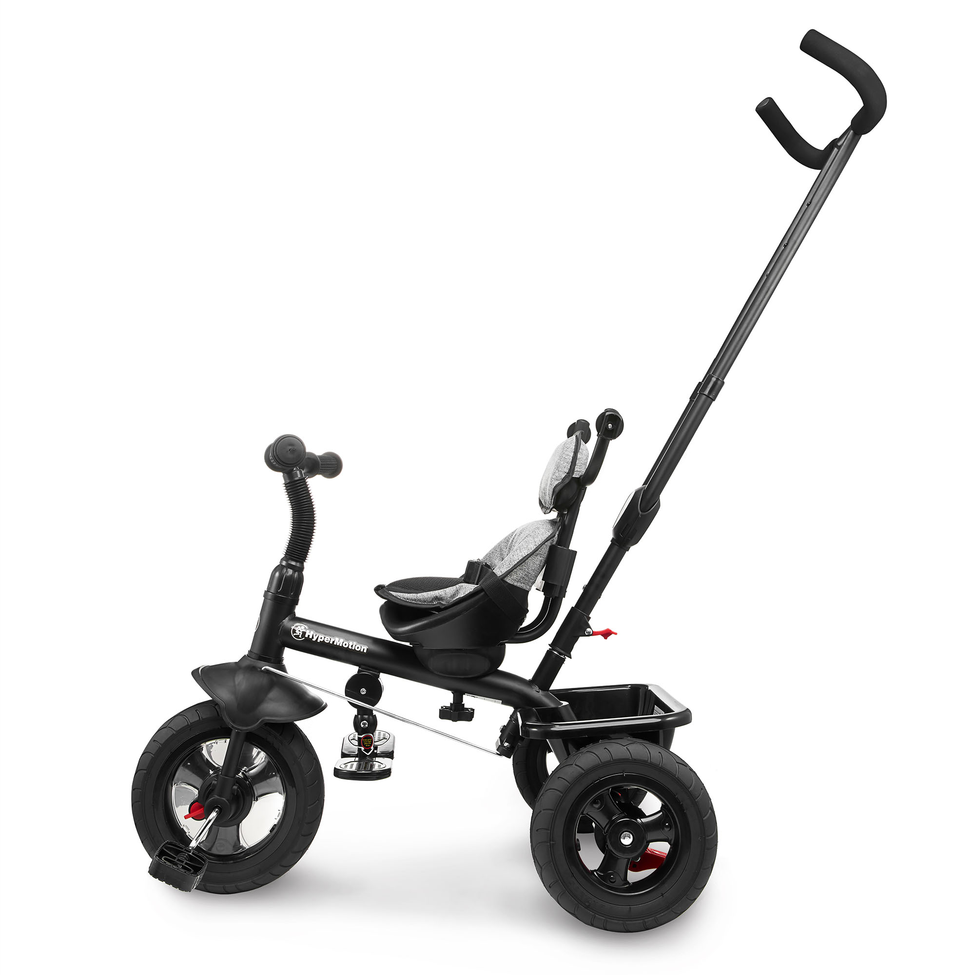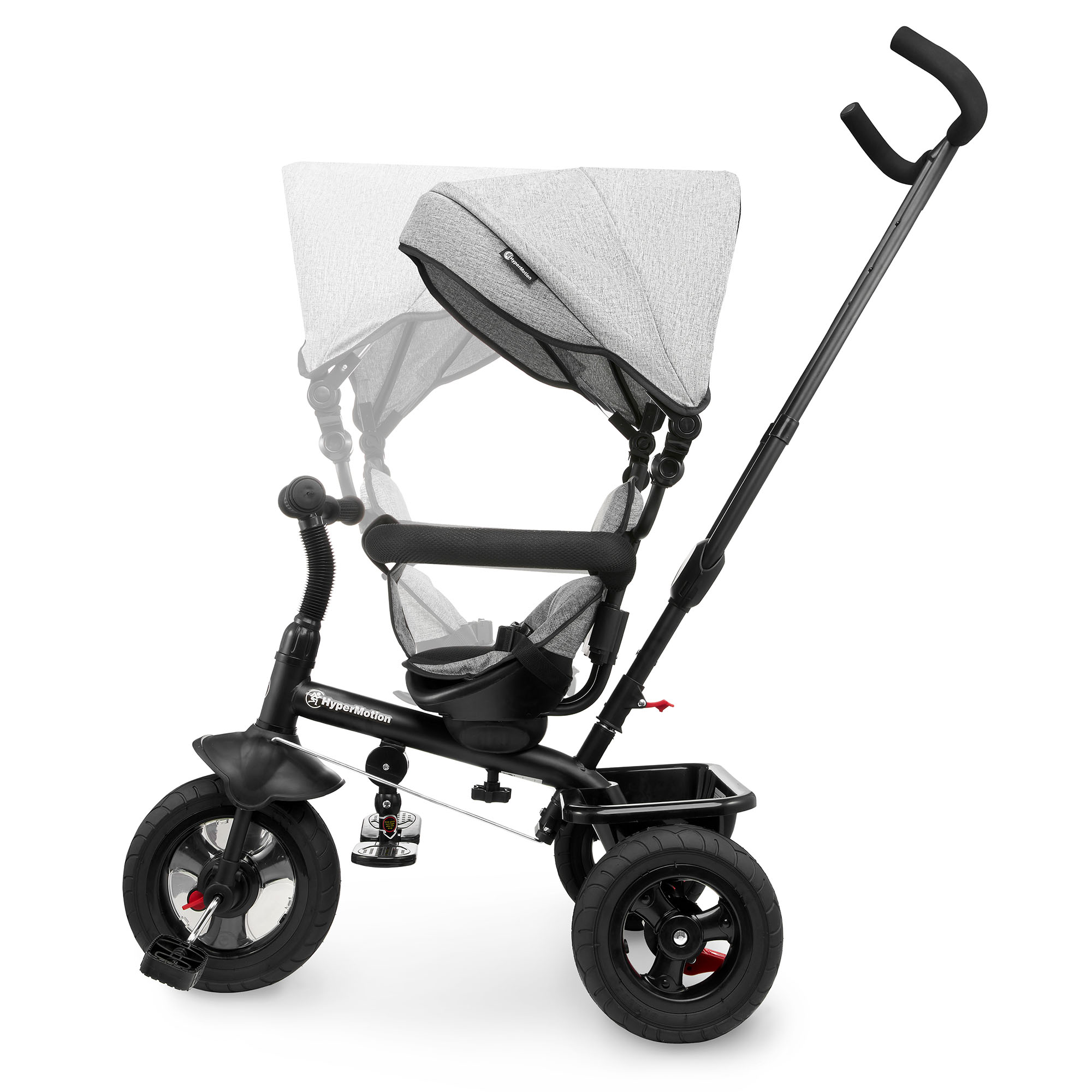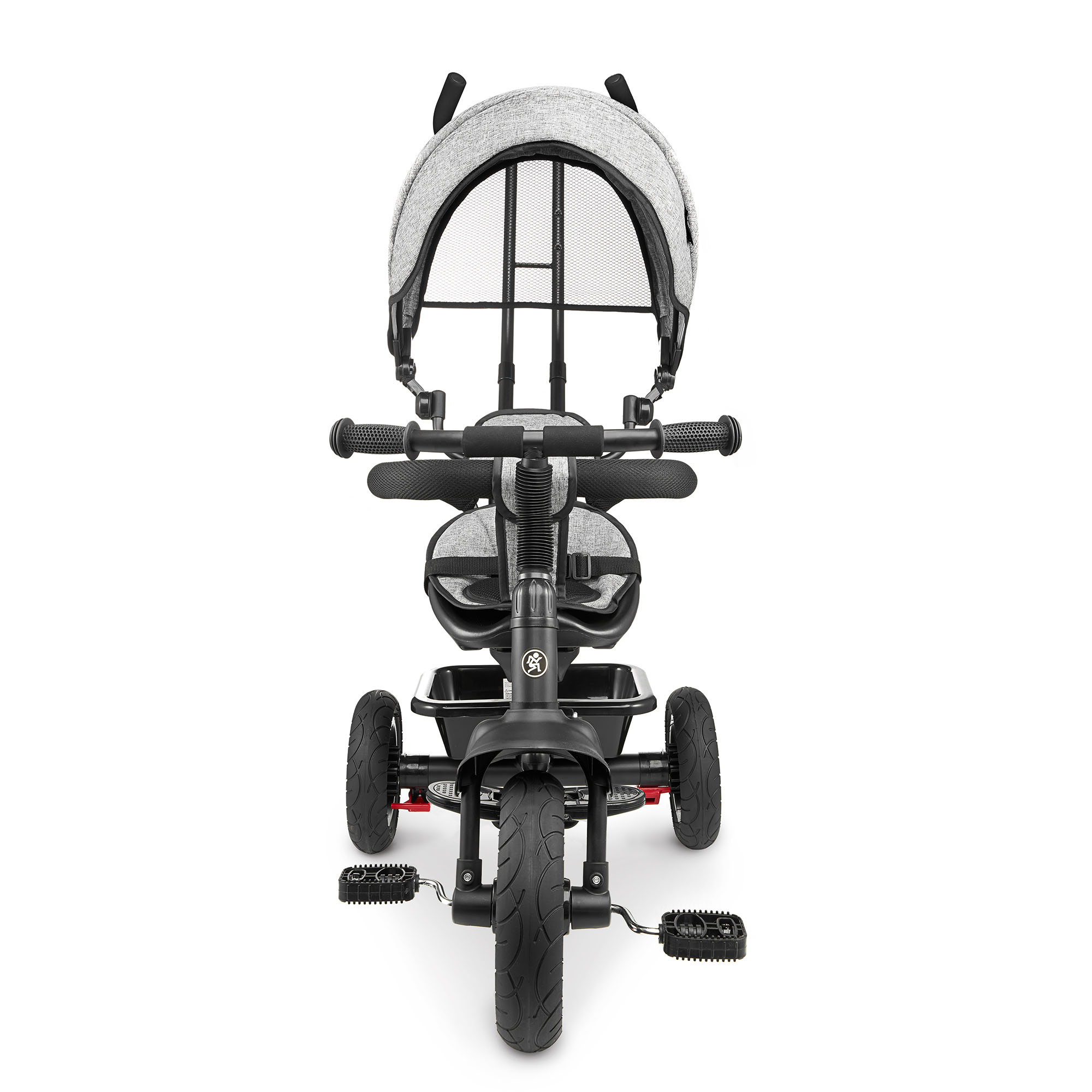 Mažesni vaikai gali patogiai įsitaisyti ant sėdynės, kojas padėti ant atramos kojoms ir keliauti stumiami tėvų, naudojančių pridedamą ilgą rankeną. Vaiko vairas ir tėvų vairas yra sujungti - todėl tėvai gali lengvai valdyti važiavimo kryptį.