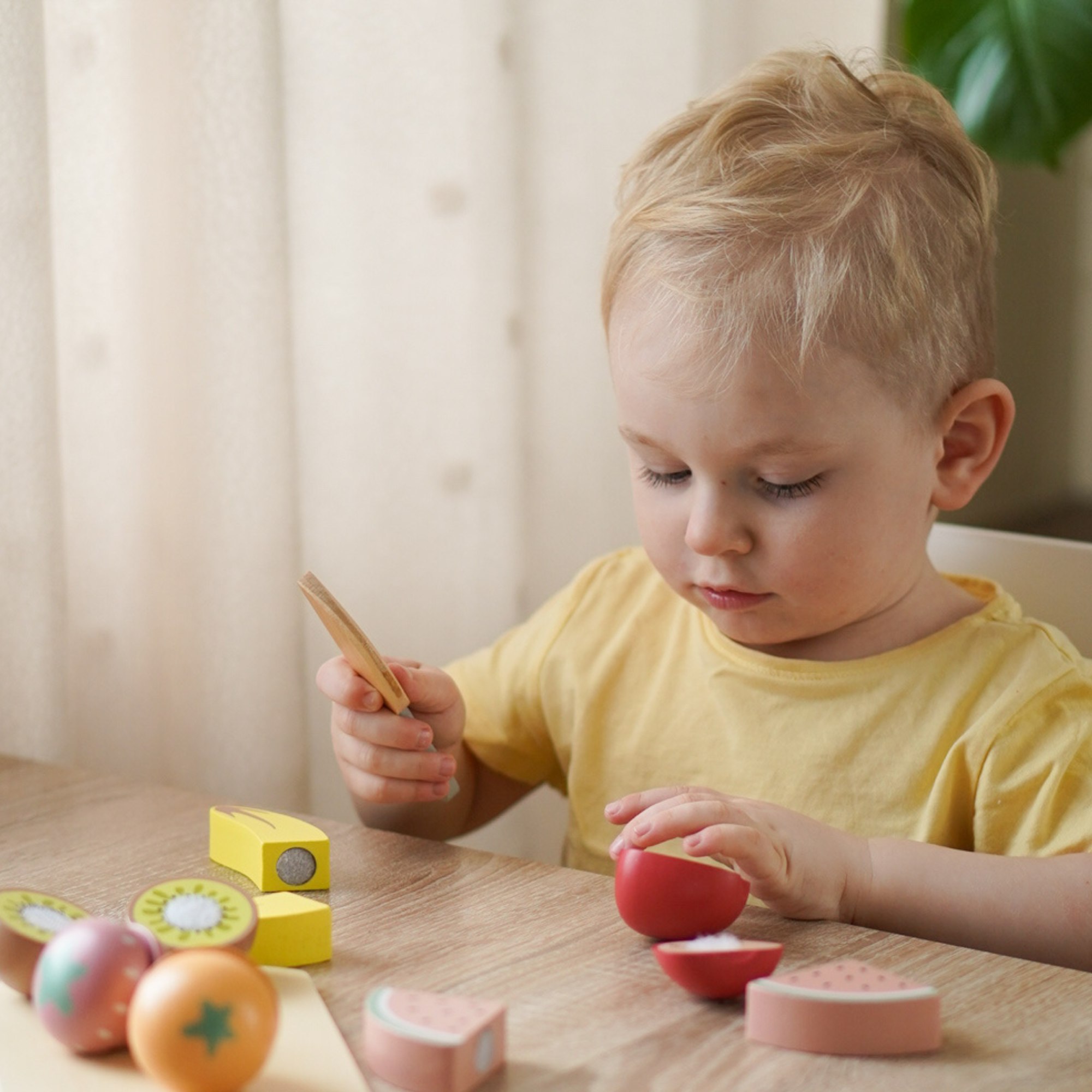 Mediniai vaisiai pjaustymui puikiai tinka kaip dovana mažyliui, suteikianti jam daugybę valandų kūrybinių pramogų.